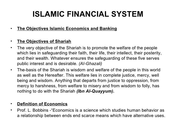 Introduction A financial system that is based on Islamic principles and values which eliminates riba and ensure a profit sharing mechanism in the financial system. PRINCIPLES OF AN ISLAMIC FINANCIAL SYSTEM The basic framework for an Islamic financial system is a set of rules and laws collectively referred to as Shariah governing economic social political and cultural aspects of Islamic societies.