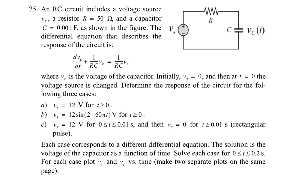 Solved 25 An Rc Circuit Includes A Voltage Source Vs A Chegg Com